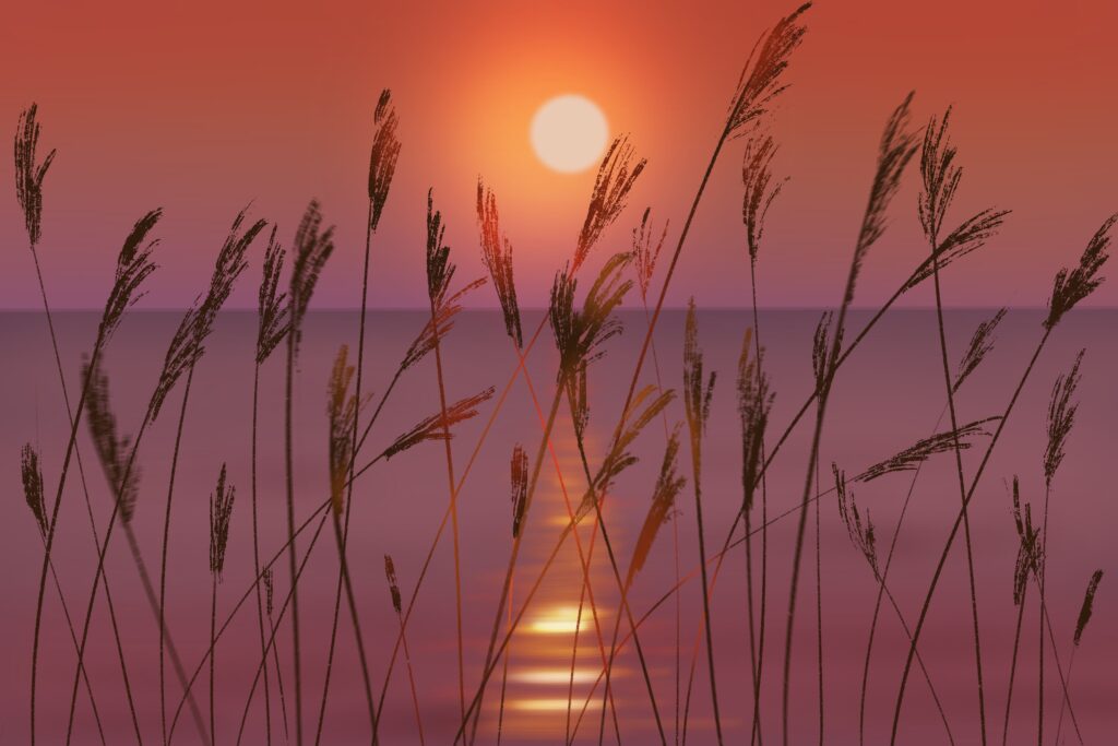 Created using Procreate on an Apple iPad Air. This piece was created using a reference photograph taken on holiday in January 2025. For this piece I only used standard Procreate brushes. I added the animal footprints for compositional reasons.