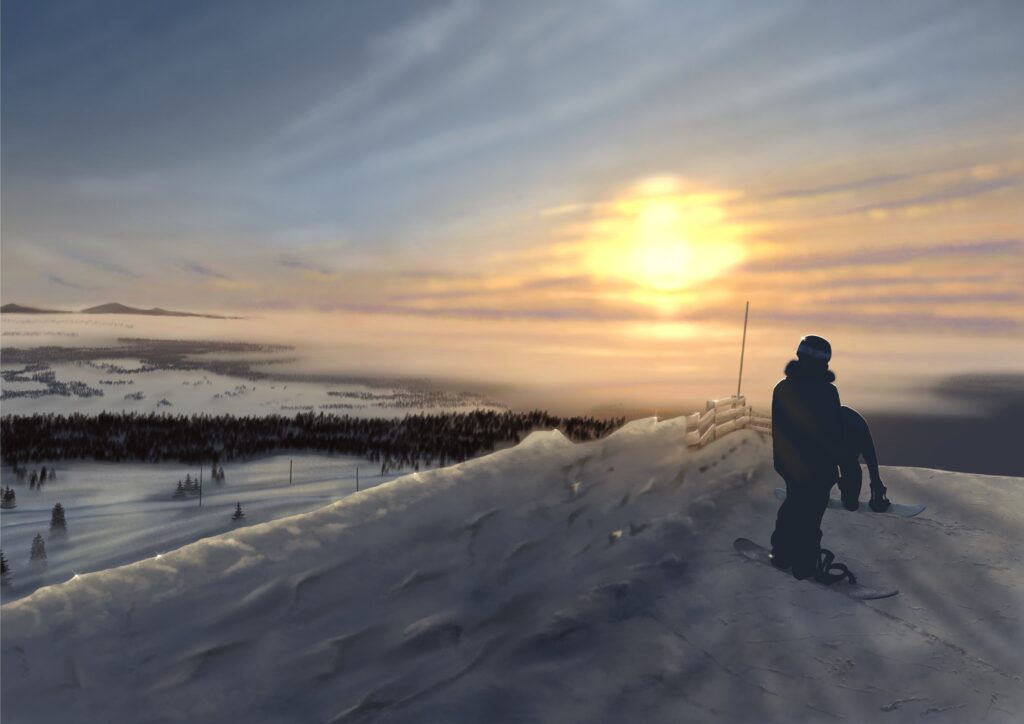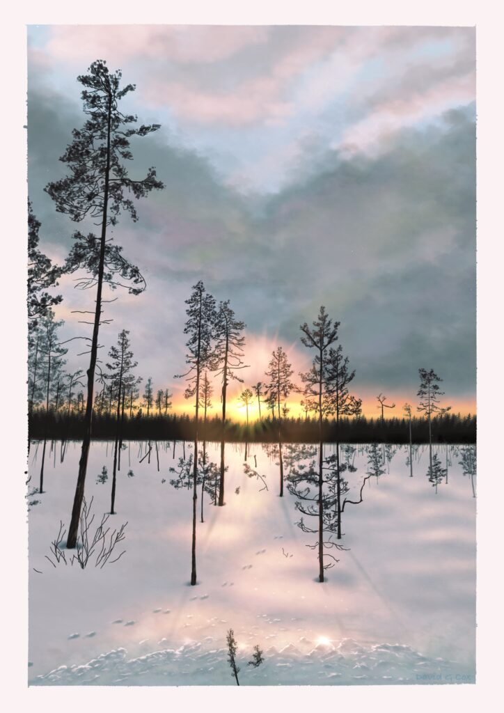 Created using Procreate on an Apple iPad Air. Another winter scene from Finland. Taken from a reference photo that I took whilst on a skiing/snowboard holiday. Not my best work but it’s ok.