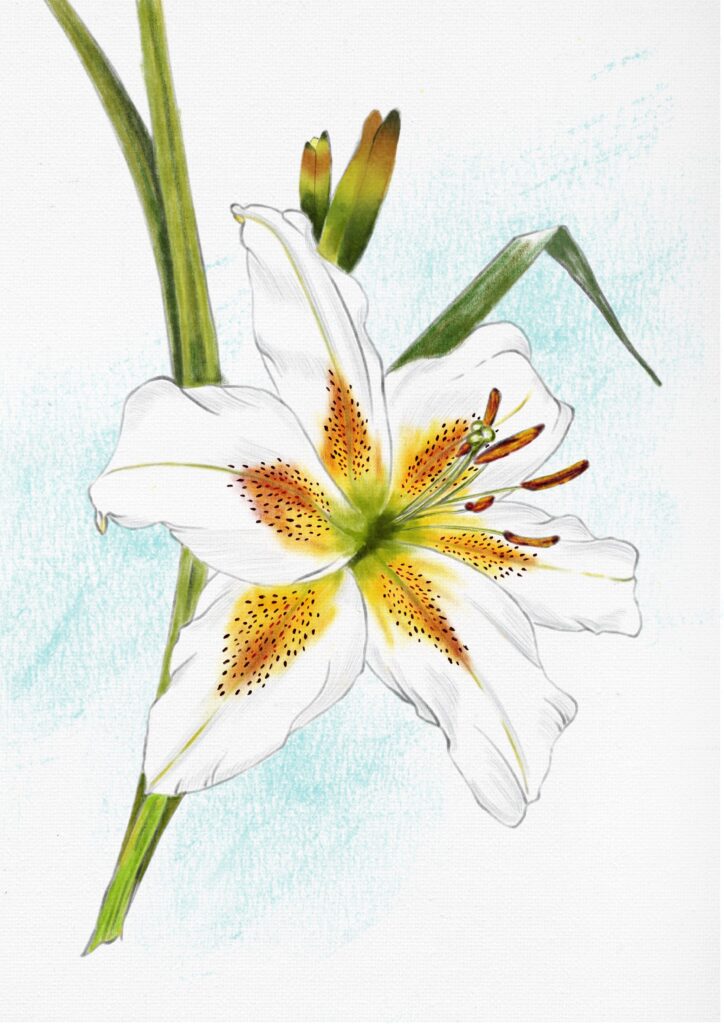 Created using Procreate on an Apple iPad Air. This Coloured Pencil artwork was inspired by Kris Lauren’s Floral Sketch Book tool from Design Cuts.