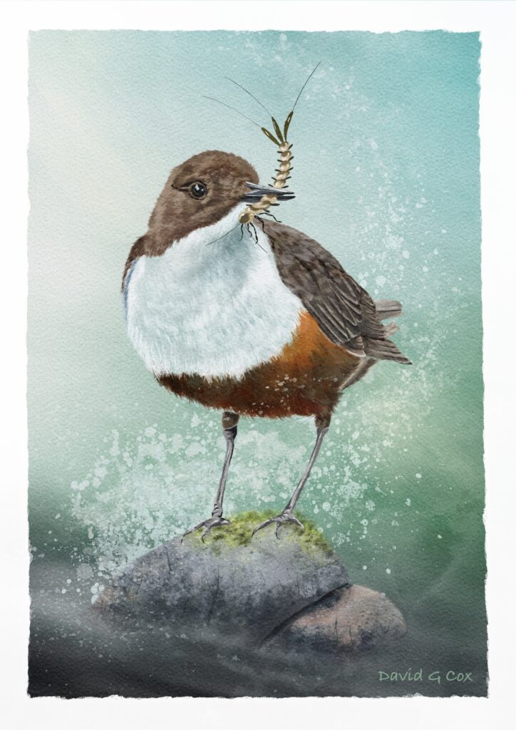 Created using Procreate on an Apple iPad Air. This piece was created using the new wildlife brush set from Nathan Brown. I also used some of his other products, including, Master Watercolour Brushes, Art effects toolbox and Wet media canvas. The bird is a dipper, which we often see when holidaying in the UK Lake District.